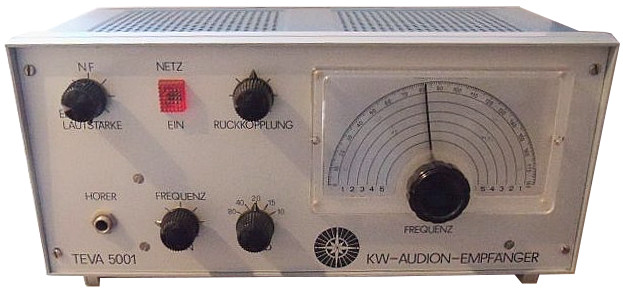 Nach dem erfolgreichen Aufbau meines 0-V-1-Empfänger mit einer Röhre ECC81 suchte ich nach geeigneten Schaltungsvorlagen, um ein noch besseres Gerät bauen zu können. Fündig wurde ich nicht etwa in einem Buch, sondern im Katalog der damaligen Firma Technik-Versand aus Bremen, die unter dem Label Teva auch eine Reihe von Amateurfunk-Bausätzen herausgebracht hatte, darunter auch den hier vorgestellten Audion-Empfänger. Die Schaltung machte mir einen nachbausicheren Eindruck. Außerdem wurde sie von einem älteren OM ausdrücklich gelobt: Er hatte ein solches Gerät einmal besessen. Ich machte mich also daran, nach dieser Schaltungsvorlage ein Gerät zu bauen, ohne mir jedoch den Bausatz zu besorgen. Die benötigten Teile hatte ich recht bald aus alten Radios zusammen gesucht.