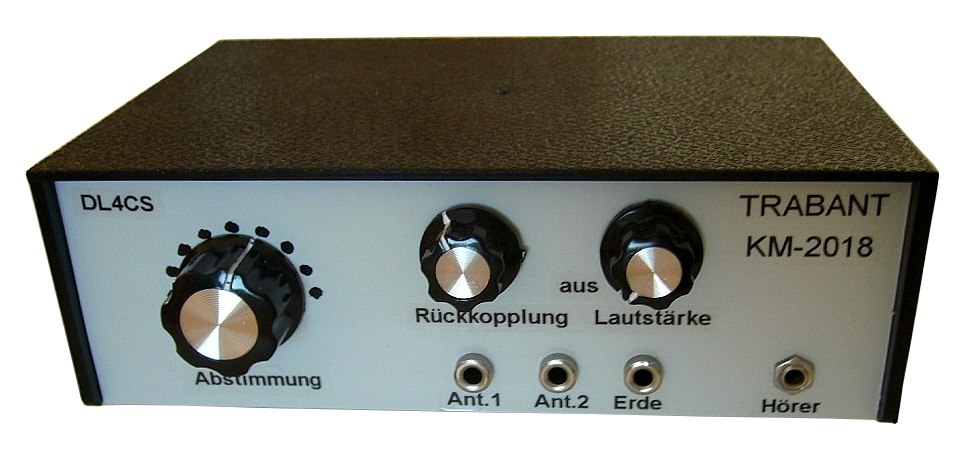 Wie schon bei den Einröhren-Empfängern erwähnt, stellte Heinz Richter in einem seiner Bücher die Schaltung des Trabant KM vor. Es handelte sich um einen transistorisierten KW-Steckspulen-Empfänger, der von Radio-RIM mit Platine und Gehäuse ab Ende der 1960er Jahre als Bausatz vertrieben wurde. Ich baute jene Schaltung nach, aber in Form einer Eigenkonstruktion mit Brettschaltung. Dies war der erste von mir selbst gebaute Rückkopplungs-Empfänger mit Transistoren, der anständig funktionierte. Mit einem Sperrkreis in der Antennenleitung, der auf den bei uns sehr starken Mittelwellen-Ortssender abgestimmt war, ließ sich brauchbarer Empfang ab etwa 2 MHz erreichen. So konnte ich immerhin damit auch im Grenzwellengebiet arbeitende Seefunkstationen (z.B. Norddeich Radio) hören, die seinerzeit noch in AM sendeten. Mittelwellen-Empfang gelang mir jedoch trotz Sperrkreis aufgrund meiner geringen Entfernung zum MW-Ortssender nicht, da dieser unter 2 MHz überall durchschlug. Dafür ließen sich auf sämtlichen KW-Rundfunk-Bändern seinerzeit nahezu unzählige Radio-Stationen empfangen. Die Rückkopplung setzte sanft ein und veränderte die Abstimmung nur wenig, so dass sich die Schaltung mühelos auf große Empfindlichkeit justieren ließ.