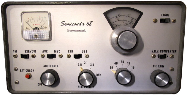 Beim Semiconda 68 handelte es sich ursprünglich um ein im Katalog der Firma Semcoset vorgeschlagenes Selbstbauprojekt. Zunächst erschienen im Lieferprogramm die zum Aufbau dieses Gerätes benötigten Baugrupppen, und zwar ein HF-Eingangsteil für die klassischen fünf KW-Amateurbänder 80m, 40m, 20m, 15m und 10m, ein ZF-Verstärker mit Demodulatoren für AM, SSB und CW sowie ein passender NF-Verstärker mit Spannungsstabilisator für die zuvor genannten Baugruppen. Der HF-Teil verfügte von Beginn an über einen Konvertereingang. Mit dem bald darauf angebotenen Gehäuse konnte mit diesen fertig bestückten und vorabgeglichenen Baugruppen der Empfänger Semiconda 68 ohne größere Vorkenntnisse selbst zusammengebaut werden. Bei deutlich kleineren Abmessungen und vollständiger Transistorbestückung konnten vergleichbare Leistungen erzielt werden, wie mit den bis Ende der 1960er Jahre in europäischen Amateurstationen weit verbreiteten, röhrenbestückten Empfängern des italienischen Herstellers Geloso. Das Gehäuse für den Semiconda 68 war auch für den Einbau eines 2m-Konverters vorbereitet, wodurch man einen Fünfband-KW-Empfänger erhalten konnte, mit dem zusätzlich auch der Empfang des 2m-Bandes möglich war. Später erschienen auch fertig aufgebaute Versionen dieses Gerätes, die jedoch nur wenig Verbreitung fanden. Aufgrund dessen wurden die meisten dieser Geräte unter Berücksichtigung individueller Wünsche selbst montiert und verdrahtet. Demzufolge gibt es heute kaum noch Exemplare, die wie das abgebildete Gerät dem vorgeschlagenen Originalkonzept entsprechen und ohne irgenwelche zusätzlichen Einbauten und Schalter an der Frontplatte sind.