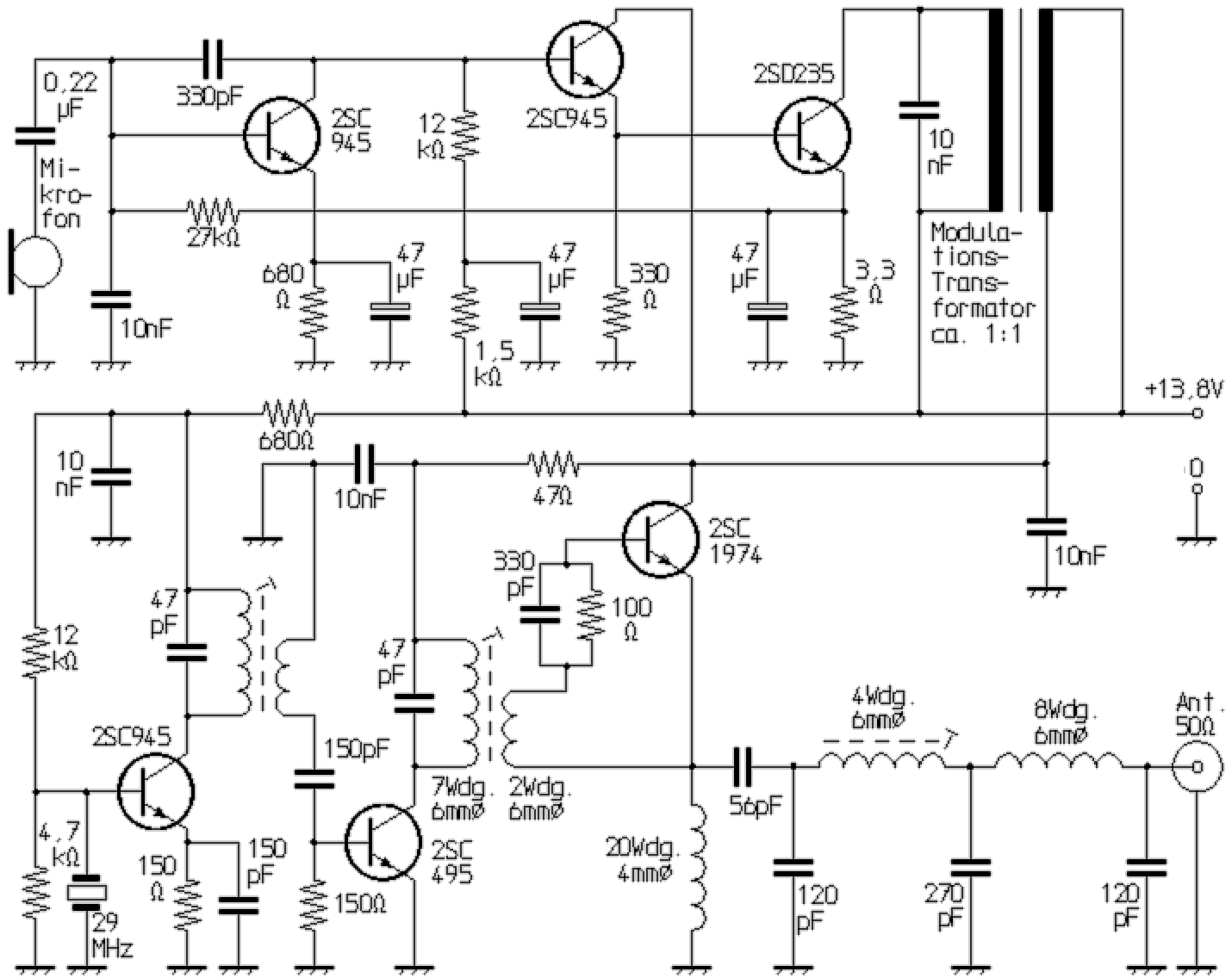Zweistufiger Transistorsender für 28...29,7 MHz