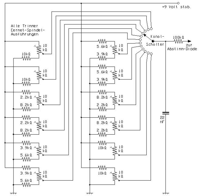 Zur Abstimmung empfielt sich ein Potentiometer mit Feintrieb. Wenn durch zweckmäßigen Aufbau und eine ausreichend stabilisierte Versorgungsspannung für hinreichende VFO-Frequenzstabilität gesorgt wird, kann man auch den Original-Kanalschalter zur Einstellung der Frequenz benutzen, indem zwischen den Schleifern mehrerer auf die gewünschten QRGs voreingestellter Spindeltrimmer umgeschaltet wird. Um die Schaltung zur Steuerung eines alten CB-Gerätes zu verwenden, wird der RX-Ausgang mit der Basis des Transistors vom Empfängeroszillator verbunden. Die Quarze vom Sender und Empfänger werden sämtlich aus ihren Fassungen gezogen bzw. ausgelötet. Der TX-Ausgang der Schaltung ist mit der Basis des Transistors im Senderoszillator zu verbinden.
